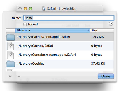 右键点击Profile-选择“Edit”之后可以发现 Profile 它其实是由N多的Caches,Cookies,Plist文件组成的。在switchUp文件家里面,这些Profile能够被backup备份,restore恢复,甚至是copy拷贝到安装有相同程序和和同样安装有SwitchUp的Mac设备上。你只需要将“switchUp”文件放在位于User/Library/Application Support/SwitchUp目录下即可生效。