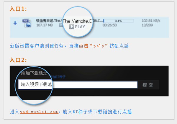 1、新版迅雷7客户端,创建任务后可直接点击"play"按钮,直接播放!