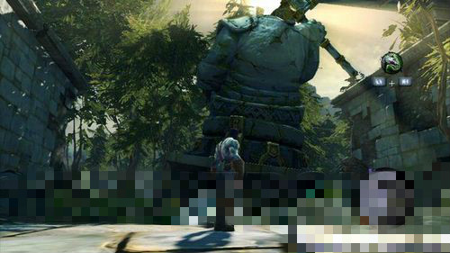 灾祸森林中间雕像的后面,下图所示