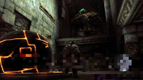 圣釜殿一层区域南部的双球谜题处,被闸门挡住的一个球体的右边