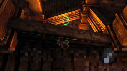 圣釜殿一层区域,找到骷髅钥匙之后,打开上锁的大门,来到下图所示的球体谜题房间;解开谜题之后,沿着一边的阶梯反跳取得该硬币