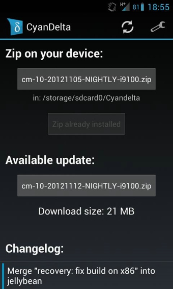 CyanDelta是「CM更新“,”ROM管理器“和”BBQLog“的完美替代品。当一个ROM更新可用时,它会通知您,并显示您所安装的版本和新的更新日志。如果您决定要更新,它会三角洲下载新的版本,如果你想它会自动通过恢复安装新的拉链。【CyanDelta Updater软件特点】