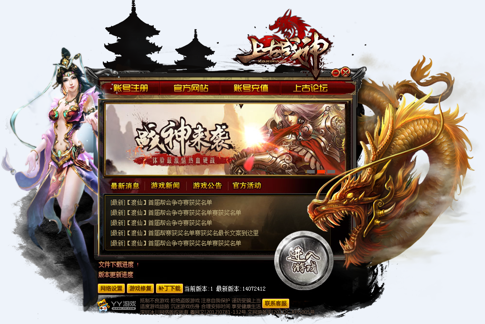 进入游戏后,熟悉一下游戏界面,为以后的迅猛发展打下良好的基础,现在让我们根据图片,快速了解一下YY《上古战神》的游戏界面吧。
