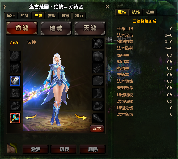 三魂三魂系统是YY《上古战神》独创的特色系统,三魂分为命魂、地魂、天魂。同一个角色的三个魂可以选择不同的职业,比如命魂为武圣,而天魂可以选择幽冥或者剑仙,地魂可以选择天师。