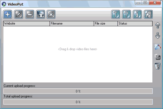 VideoPut 是一款把你的视频文件上传到Internet的工具,当前你可以把视频文件传到YouTube, MySpace, Flurl.特别是上传多个视频文件时比较方便
