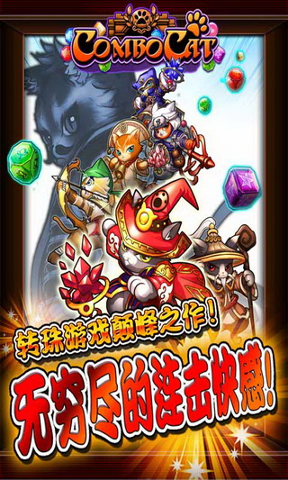 《Combo Cat》是一款融合各种文化的一款游戏,包逻万象诸如:西洋、幻想、中国、日本、猫与龙的各类背景设定。这款游戏希望带给玩家开心冒险的感受,透过轻鬆舒压、RPG类型的游戏体验,让喜好转珠类宝石消去、爱猫族群的玩家们,可以在这款游戏中找到游戏的乐趣。