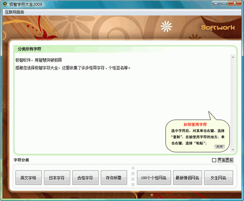 它收集了诸多特殊字符、个性签名、个性名称等内容