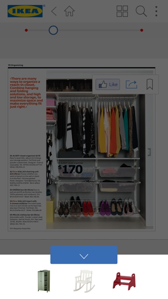您可使用本应用程序下载最新版宜家《家居指南》以及其他宜家出版物。宜家《家居指南》电子版如同其纸质版一样,可以免费为您带来丰富的家居装饰知识及创意和灵感。《家居指南》约300页,展示了从宜家所有系列中精选出来的部分产品。《家居指南》和出版物展示了宜家的各种创意和产品,除此之外,您还可以通过智能手机或平板电脑获取更多内容。您可以浏览纸质版宜家《家居指南》的相关页面或阅读电子版《家居指南》的内容,观看短片及360°全方位样板间,了解产品背后的故事。此外,您还可以借助3D技术和扩增实境技术,从《家居指南》中选择您自己的房间所需的家具!如想获取补充内容,只需找到《家居指南》页面上的“+”号标志,然后开始浏览。所有的补充内容均可在电子版宜家《家居指南》上看到。宜家《家居指南》于1951年首次出版,电子版于2011年推出。