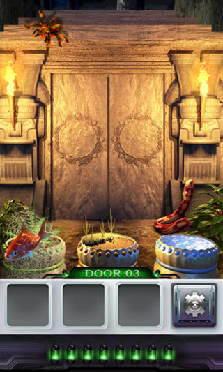 7、摇动手机,门上会掉下一下石球,用石球按住红色按钮,门就开了;