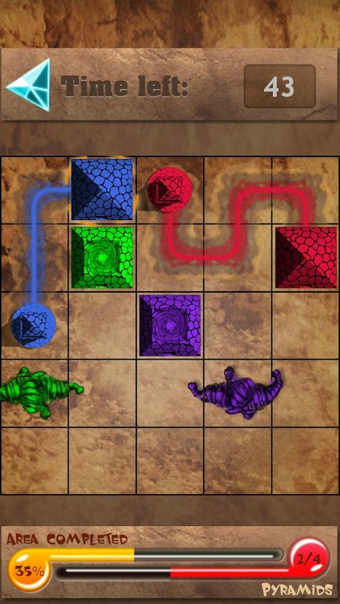 《迷失木乃伊 Mummy Run》是一款非常另类的益智游戏。那些可怜的木乃伊被遗弃在沙漠里。导致众多的木乃伊无法回到自己的金字塔中。在游戏过程中,你会得到一张沙漠地图,不同的木乃伊和金字塔,你需要为每一位木乃伊指定行动的路径,安全的回家。每个木乃伊都有一个相应颜色的金字塔。创建路径滑动您的手指从木乃伊到金字塔(或反之亦然)。每个木乃伊留下一个方尖碑,以纪念它的起始位置。完成所有的木乃伊回家,解锁所有的地图!游戏中有200多个关卡,极具挑战!