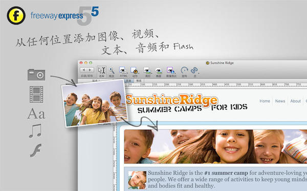 Freeway Express AS支持 XHTML,CSS,Unicode和简体中文,功非常的强大,使用起来也非常的简单,里面有网页模板可供选择,制作网页很方便。使用 Freeway Express 软件轻松创建网站、HTML 电子邮件以及演示文档。然而,千万不要因为它的便捷应用而忽视了其强大功能。Freeway Express 软件将为您的设计创作提供全面的控制功能。开始使用任一专业的设计模板后,您首先会发现模板上的所有功能都是可编辑的。