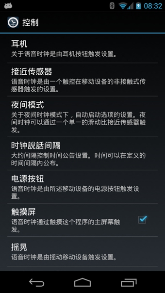 - 支持 摇晃手机报时