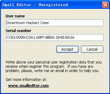 安装之后,在窗口中鼠标右键,点击Register Small Editor,输入下面的用户名和序列号激活SN: