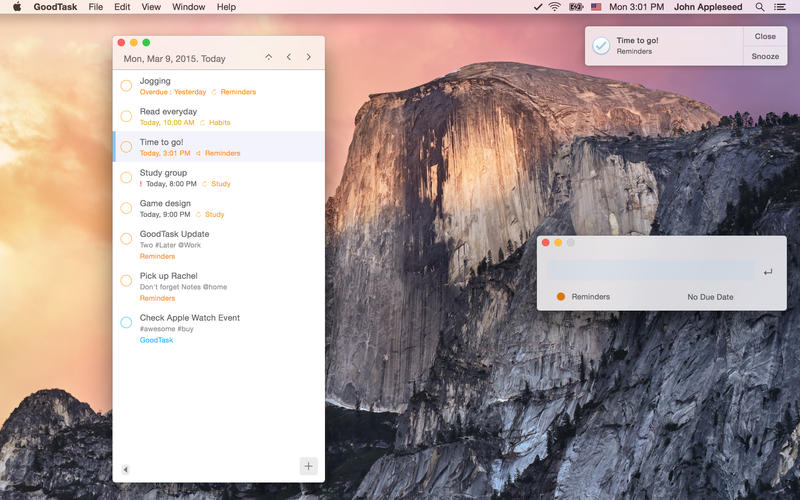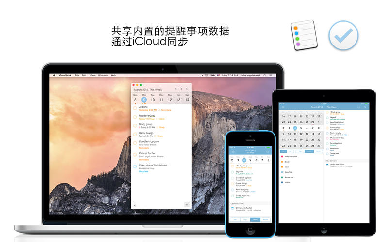GoodTask是一个强大的提醒器客户端,但它也显示日历上的事件。扫一眼你的日程表,你就可以马上检查你的任务。