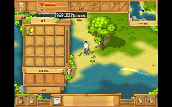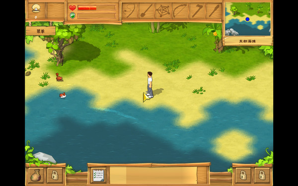 向西前往东海滩,一路上收集浮木和贝壳。在海岸边箱子里可以找到钓线。继续向西海滩前进,在海岸边箱子里找到钓钩。这时候浮木也应该收集够了,先回去交接任务。