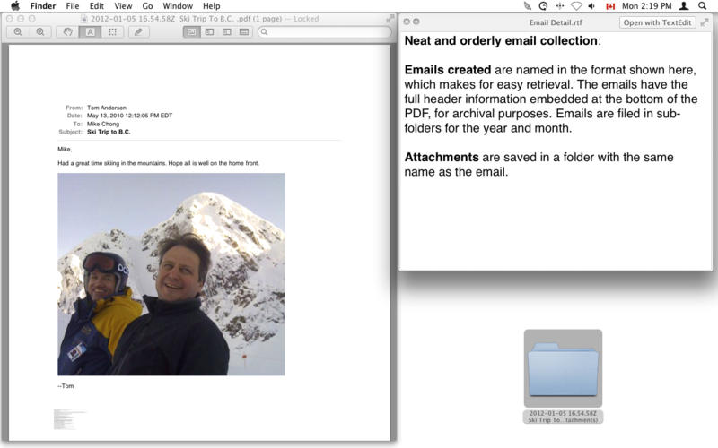 2、电子邮件生成的存档,然后是搜索的搜索,以及个人电子邮件可以使用Spotlight等定位 - 他们只是普通的PDF文件。电子邮件归档也有一个搜索窗口,您可以使用它来查找邮件按主题,作者等。