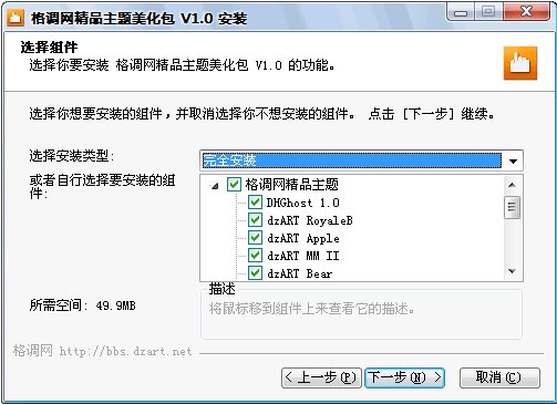 双击即可很方便地安装29套不同风格的主题、壁纸、桌面图标,Vista鼠标指针,Vista开关机声音。全自动安装,并可很干净地卸载。安装包大小40M,完整安装约100M