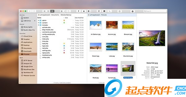 1、双面板,标签文件管理2、连接到使用FTP,SFTP和WebDAV的,亚马逊S3,iDisk上,SMB,AFP NIS远程或共享卷