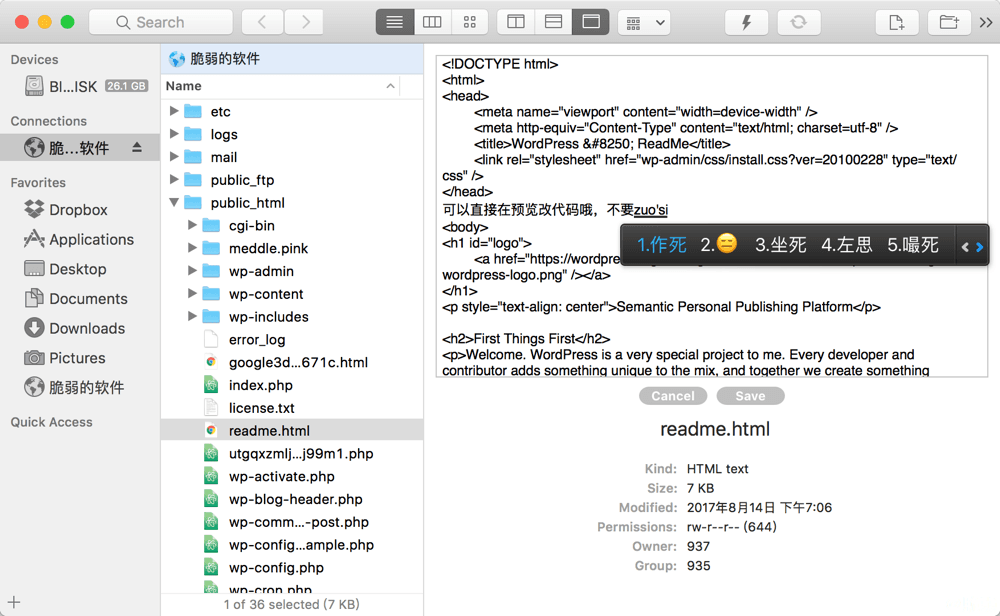 除了大家都有的图片、视频等多媒体预览,ForkLift 还支持预览 PDF 时直接点击文档内的链接、复制文字等简单操作;还能直接编辑 TXT、HTML/PHP 等多种文本格式,对于艺高人胆大的程序员来说应该挺方便的。