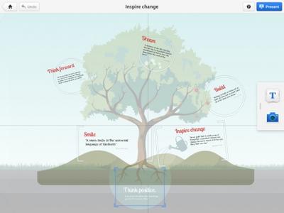 4、除了平移和缩放,Prezi还支持图片、视频、PDF等各种媒体素材的嵌入,可以多人在线编辑,生成的演示文稿既可以在本地观看,也可以上传到服务器或嵌入网页在线查看。