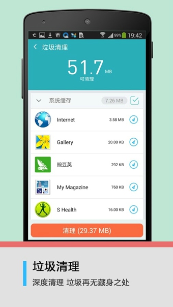 3、垃圾清理:深度清理缓存和残留文件,使手机更高效的运行。