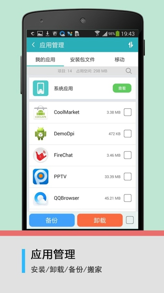 2、应用管理:管理手机应用,还手机一个干净整洁的世界。