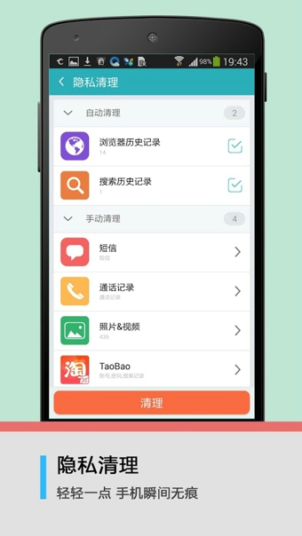 4、隐私清理:体贴的隐私管理,瞬间即可让手机无痕。