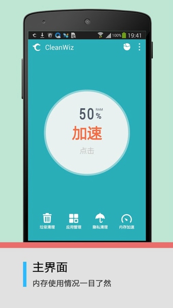CleanWiz是目前安卓市场上最为简洁强大的一款清理工具,只有4.3M大小,完全免费,无需任何用户隐私权限,致力于解决手机运行缓慢、存储空间不足及个人隐私管理的问题。CleanWiz主要有四大功能——内存加速、应用管理、垃圾清理、隐私清理。