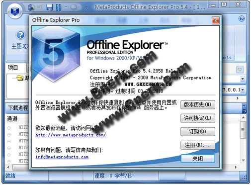 Offline Explorer Pro V5.8.3174 多国语言绿色特别版 相当方便使用的离线浏览工具,可排定抓取时间、设定Proxy,也可选择抓取的项目及大小,可自设下载的存放位置、及存放的空间限制。它内置浏览程序、可直接浏览或是使用自己喜欢的浏览器来浏览、且更可直接以全浏览窗切换来作网上浏览,另它对于抓取的网站更有MAP的提供、可更清楚整个网站的连结及目录结构