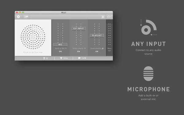 Mixlr for mac是一款专业的音频分享软件,适用于mac平台,软件分享功能非常简单,广播使用任何源和邀请别人的倾听和实时聊天,可以创建自己的自己的播放列表,还可以广播自己的声音使用麦克风,让好友直接互相分享好的音乐。