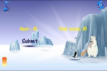 我们只要鼠标点两下就可以完成游戏了,第一下是让企鹅开始自由落体,然后第二下就是点击熊,熊就开始挥棒把企鹅打出去,看谁把企鹅打的距离更远。【游戏技巧】