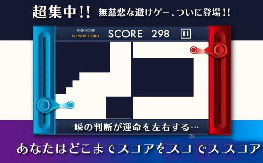 极限躲避 circle duo这种分屏游戏的创意在手游领域已经屡见不鲜,之前小编介绍过一款同厂商的暴走机器人。相对于那款跑酷游戏来说本作的难度可以说是更高,毕竟两边小球前进的速度是相同的,但是玩家左右脑的反应速度绝对不太相同,不过利用这款游戏锻炼自己的左右脑和反应能力绝对是个不错的选择,当然游戏的难度也令人满意。