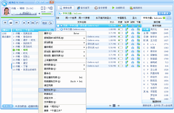 酷狗2008免费下载 去广告版功能: