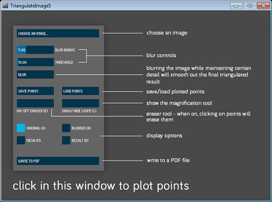 因此,如果在PS中使用不同的颜色样式创建文字,同时需要创建低多边形样式, 只需使用Image Triangulator App打开图像,并单击 LOAD POINTS按钮,打开之前保存的坐标文件即可。