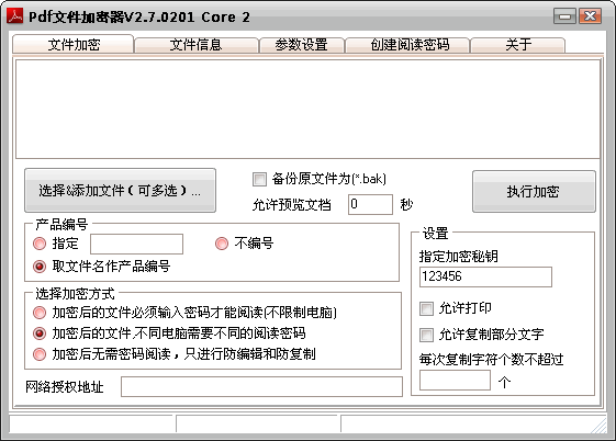 全面支持所有版本的pdf文件加密;支持批量加密和禁止打印、禁止复制;