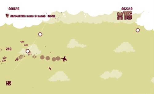 【1】玩家的飞机从潜水艇上竖直发射出去,然后便要同充斥着天空与海面的敌军较量了。这场较量是无止境的,随着玩家存活时间的拉长,敌军的火力也会越来越猛。玩家几乎必然会跪,我们所要做的就是尽可能在舞台上多风骚一会。