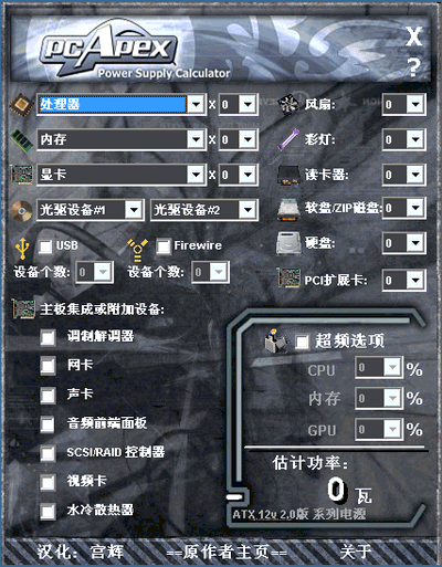 国外一个叫PCApex的网站推出的一个软件,可以计算不同的配件组成的电脑需要多少瓦电源。