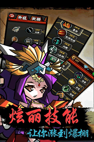 升级武器、强化技能、购买武将,本作的辅助系统十分完整,让玩家可以多样化地去体验游戏,只要愿意研究,人人都可拥有独特的应战技巧。本作还特有升星系统,分分钟将武器、武将升星为神器,还怕一招横扫八荒,敌人会不灭吗?再多千军万马也不怕!