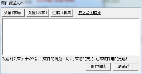 发生内容编辑:随机字母变量、数字变量、生成飞机票、发送图片
