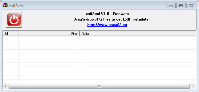 1.解压缩所下载的档案,执行“exif2xml.exe”便可开启,无须安装。开启后,将相片使用滑鼠拖拉到介面空白处,即可显示该张相片的 EXIF 资讯,点击上方有 XML的按钮,便可转出。