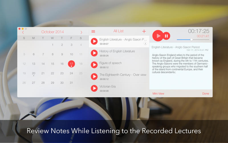 【1】记录讲座与允许任何人谁记录讲座的目的建造的,交谈可以储存在一个日历,可以轻松地共享这些录音。【2】记录讲座是一个必须的应用都是去学校或出席会议或会议。记录讲座允许学生和商人的记录和文件的讲座和演示了整洁的日历标明主题(话题)。