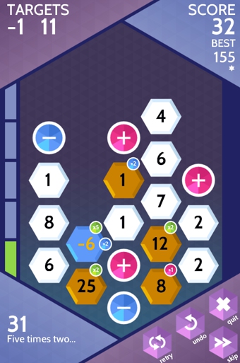 《运算消消消 Sumico》是 Bezircle 旗下工作室 Ludomotion 制作的一款创意数学益智游戏。游戏的玩法很简单,就是基本的加减乘除,但是游戏的难度在于玩家需要在特定的步数以内通过数字的组合计算得到目标数字。过程中需要注意消除一些没用的数字,还得保证网格中有足够可用的数字来合成目标数字,非常考验思维和规划能力。【更新日志】
