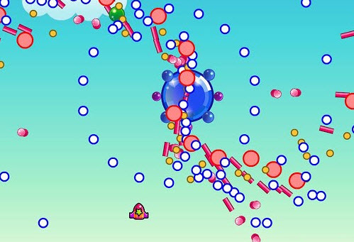幕大乱斗 Ball Barrage是一款难度颇高的射击游戏。敌人会射出大量的子弹,且会长时间在屏幕上形成几何形状的帘幕,这种射击游戏比起攻击,其实反而更重视闪避的技巧,也会有制作者把弹幕当成烟火一样的艺术品在制作!