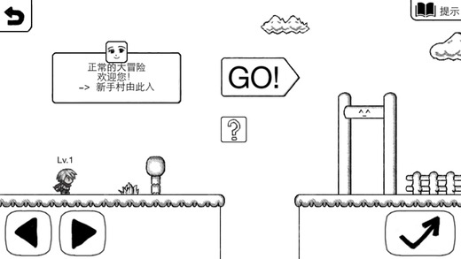 游戏里面还给玩家提供了丰富的关卡,并且每个关卡的奇葩程度不同,通关方法就更是独具一格,所以想挑战人类思维极限的小伙伴们可以小试牛刀一下。不仅仅是如此,当你们在游戏的时候,你们可以隐隐的看到《Flappy Bird》和《植物大战僵尸》的影子,但是如果你们按着玩这两款游戏的方法来玩《正常的大冒险》,那你就会陷入很尴尬的局面哦。游戏采用的是很老套的骑士拯救公主的剧情,怎么感觉像在玩《超级玛丽》呢?哈哈,虽然在主线剧情上没有什么太大的创新,但这并不是游戏的重点。这款游戏闪光点在于它吸引人的关卡通过方法和不按常理出牌的逆向思维,所以如果小伙伴们如果想挑战一下什么是无厘头的极限,《正常的大冒险》绝对是你们不可错过的佳作。
