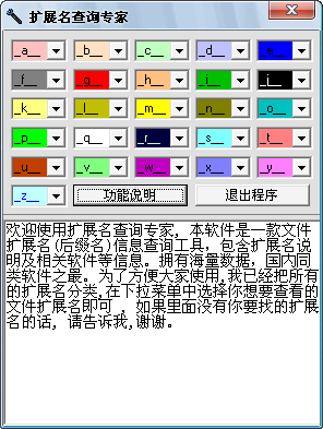 文件扩展名(后缀名)信息查询软件,包含扩展名说明及相关软件等信息。拥有海量数据,国内同类软件之最。您不妨下载试试