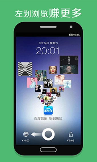 1、 看到精美锁屏图片即有奖励,左划浏览页面或右划解锁均可赚钱;