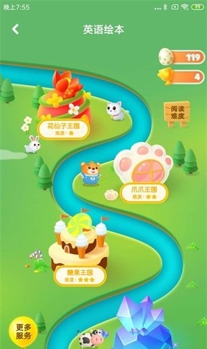 大卫熊绘本app包含专业的集电子绘本阅读、美国真人原声配音、口语发音评分等于一体的游戏化应用,主要针对4-12岁的有英语绘本阅读,及英语学习需求的少年儿童。
