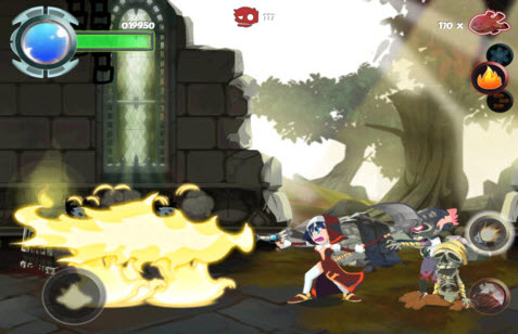 游戏的画面很卡通,色彩鲜艳的2D,低挂的圆月,萧瑟的街道,阴森的废墟,无不展示了被僵尸袭击后的惨象。但是看着修女MM一镰刀朝僵尸挥下去,四溅的鲜红溅满屏幕(不要在意为啥修女会拿镰刀……),突然觉得其实僵尸也不是那么好当的。当然用沾了升水的手枪将僵尸来个爆头也是很过瘾的,嘿~。不过也因为这些,该游戏被苹果定为了9岁以上……游戏的音乐很有紧张感,感觉不错,僵尸爬出地面和被斩断爆头的音效也很有临场感,不过听久了有点乏味……操作方面,全部的操作都是触屏,左下角是方向跳跃;左上角是圣水槽(耗完就不能开枪)和体力槽还有分数;右下角是镰刀近身攻击和远程射击;右上角是子弹种类显示和切换子弹种类;杀死僵尸掉落的心脏是用来购买武器和强化(用僵尸心脏来购物……)。