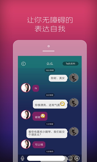 智能匹配约会:根据用户兴趣标签,智能匹配适合用户口味的约会对象。为自己约:左滑靠近我,为自己约个ta。查看资料,与ta聊天。也可以直接约ta去咖啡厅、影院哦。