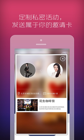 发起活动:看上TA,想和TA一起喝咖啡、看电影、泡酒吧么?为了TA请发起约会,该出手时就出手,别让幸福从指间溜走哦!
